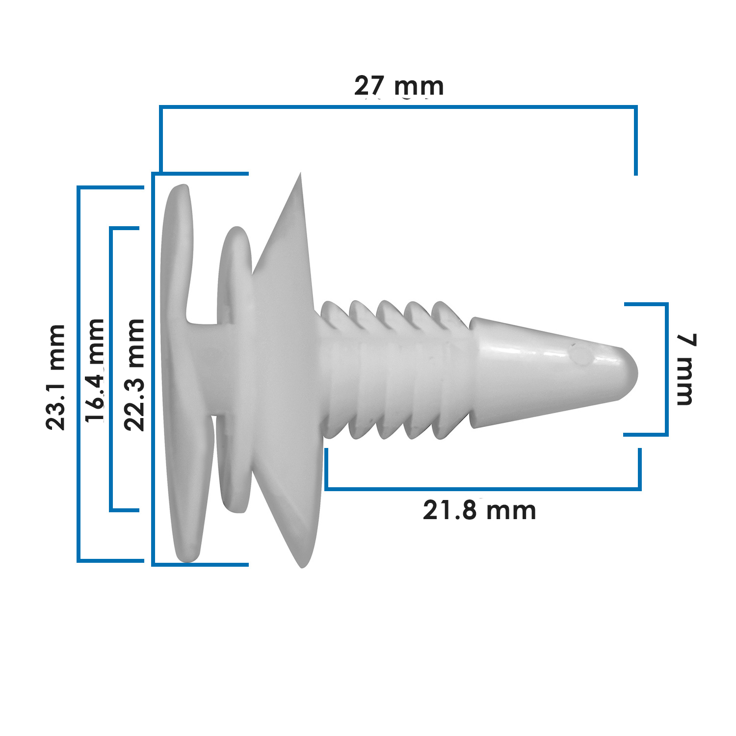 Pija plástica para tapicería Chevrolet, GMC, Pontiac. Fijación segura de interiores. Resistente y fácil de instalar.