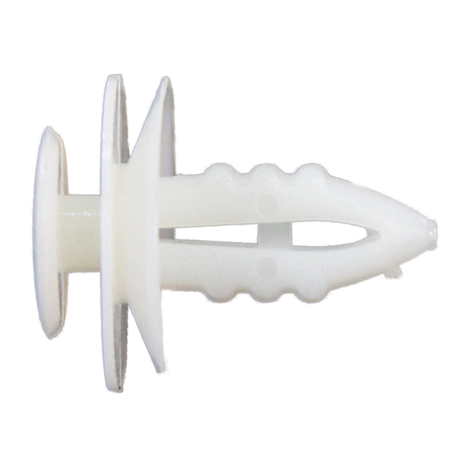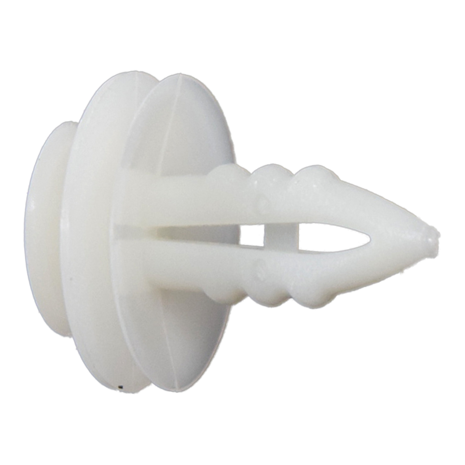 Grapa tapicería Ford (Granada/Mustang/Town Car). Nylon blanco 8 mm. Ajuste seguro y duradero.