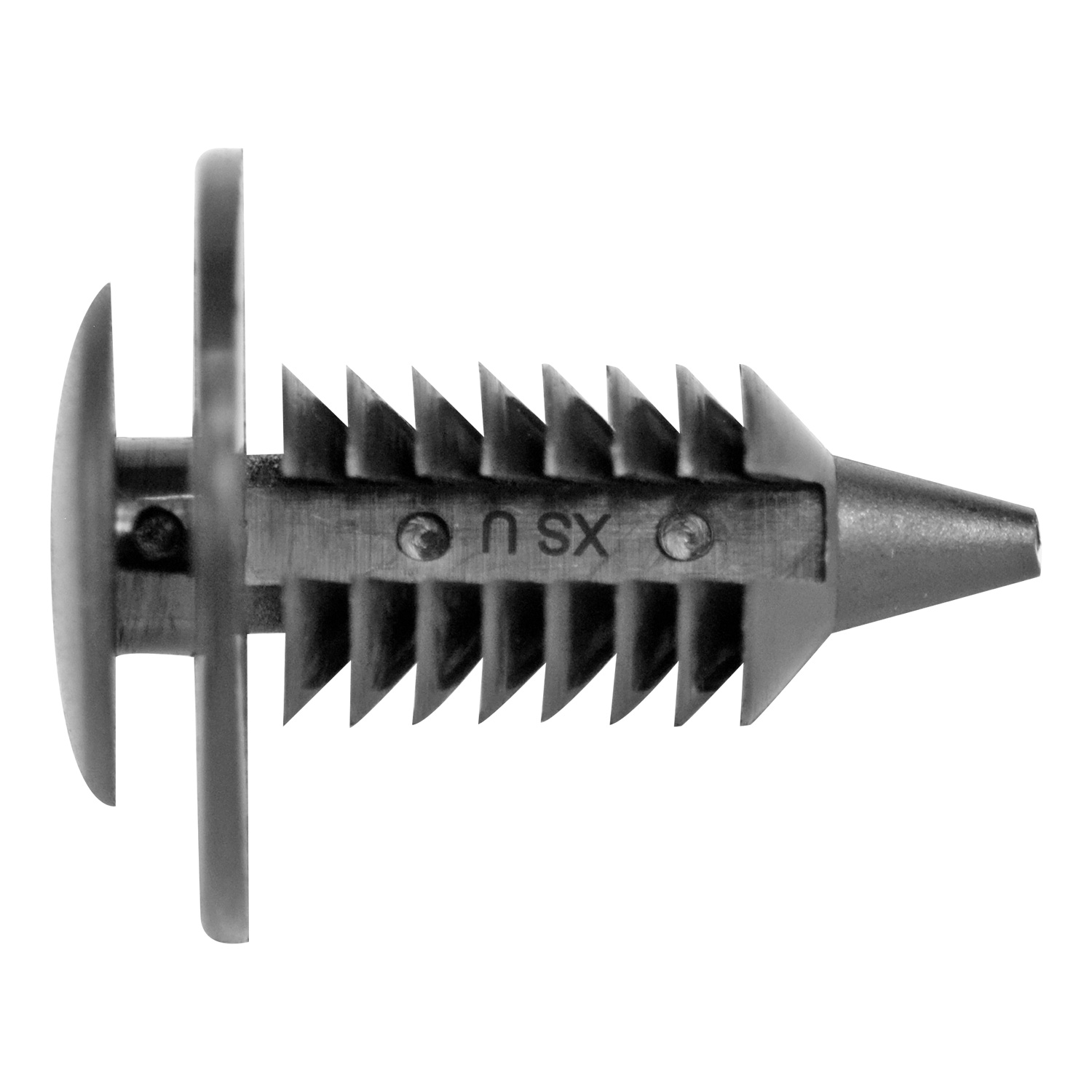 Grapa/pija de tapicería en nylon negro para modelos Ford (Taurus, Thunderbird, Cougar, Sable, Lincoln Mark VIII) y Dodge Ram (1500, 2500, 3500). Sujetador automotriz duradero y fiable, ideal para asegurar paneles interiores y molduras.