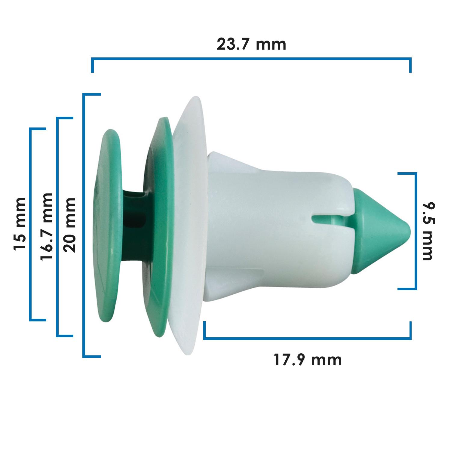 Grapa de tapicería para Chrysler Voyager (modelos 2001-2003). Fabricada en nylon verde de alta resistencia, ideal para sujetar paneles interiores y molduras con ajuste profesional.
