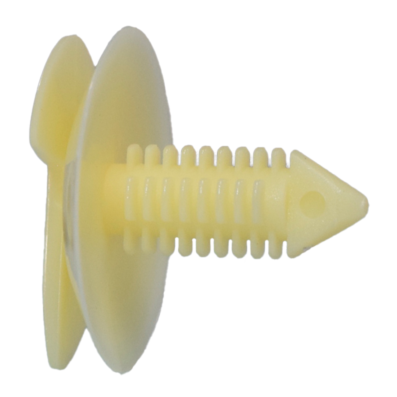 Pija de tapicería plástica para Chevrolet S‑10, fabricada en nylon blanco de alta resistencia. Diseñada para fijar paneles, molduras y forros interiores con ajuste firme y seguro. Compatible con aplicaciones automotrices GM y Chrysler.