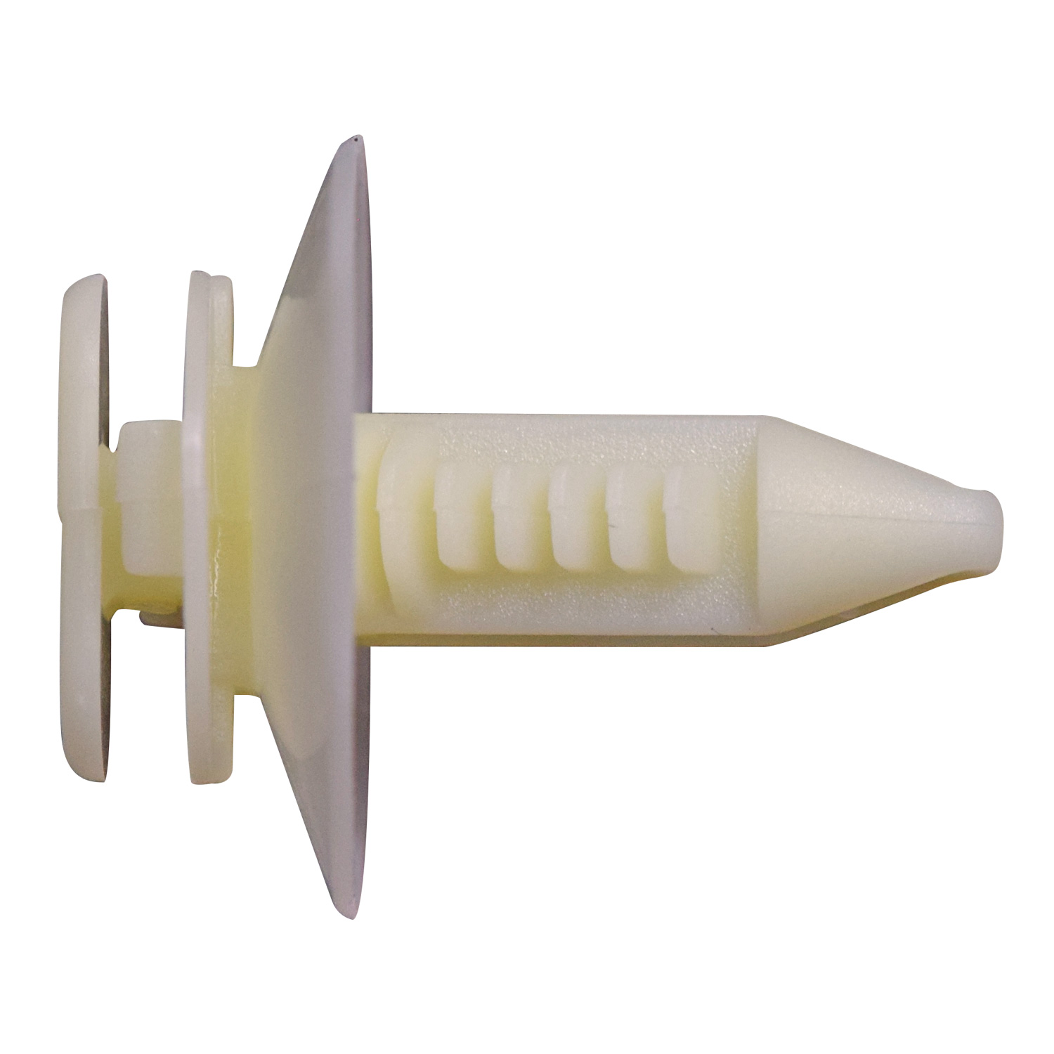 Pijas plásticas para tapicería Chevrolet, ideales para fijar paneles interiores, forros de puertas, molduras y techos. Fabricadas en nylon resistente, compatibles con múltiples modelos GM. Aseguran una sujeción firme y duradera sin dañar la tapicería.