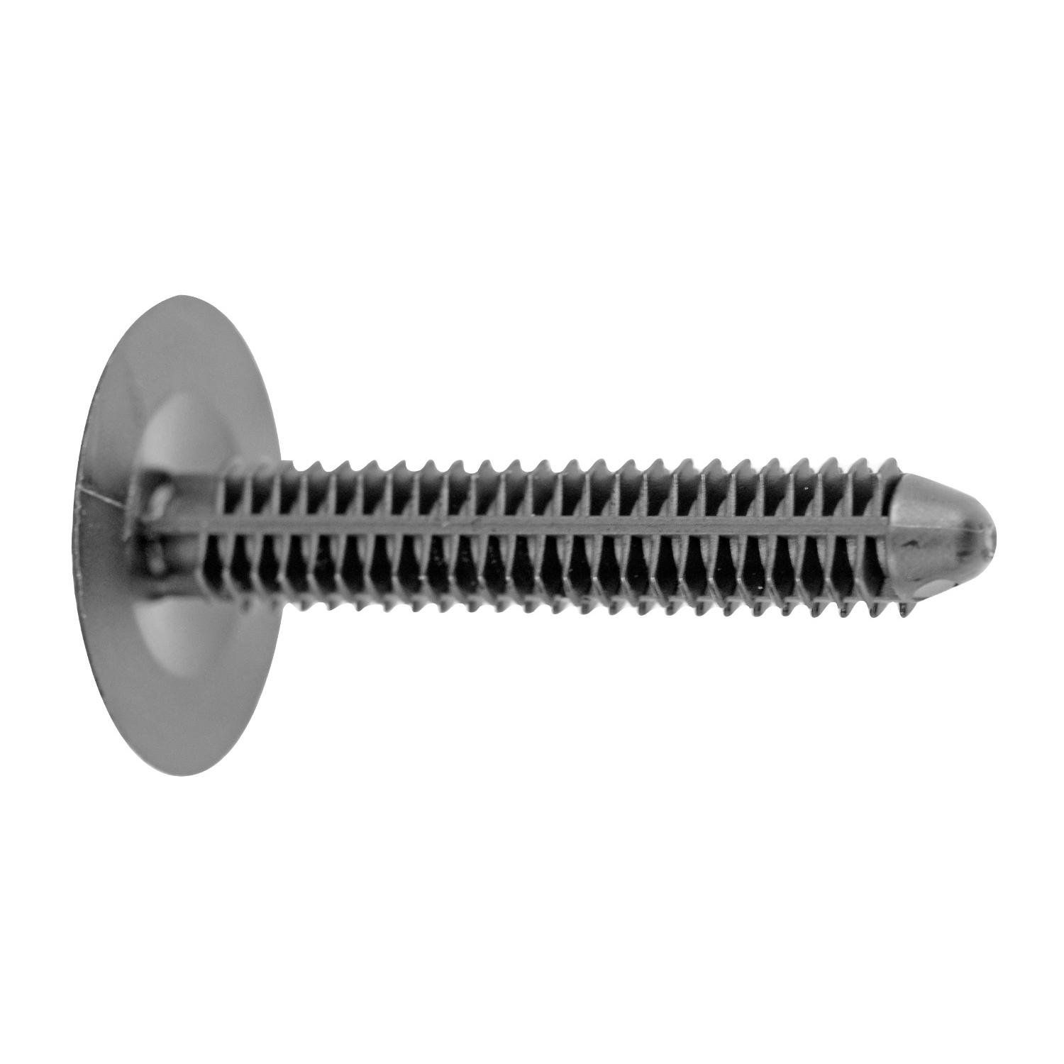 Pija plástica negra larga para tapicería, ideal para asegurar paneles interiores, techos, molduras y forros en vehículos. Fabricada en nylon de alta calidad, brinda una sujeción firme y resistente para aplicaciones automotrices profesionales.